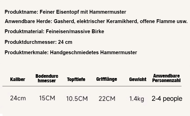 Nur ein Zehntel des Originalgewichts – selbst Frauen wenden ihn mühelos einhändig! Voreingebrannt versendet: Nach Ankunft nur mit Wasser abspülen – niemals anhaftend! 1070°C Nitrierbehandlung macht ihn innen/außen rostfrei. Der bauchige Allrounder für jeden Haushalt 2025!